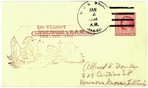 Alfred H. Dowle, USCS H-1609 (1995). Was the national president of the Naval Covers Collectors Society from 1959 to 1961. He provided significant support for the Society in the midwest. Editor of the USCS LOG for several years, and part of the committee that assumed responsibility for the Catalog of United States Naval Postmarks when the USCS took over the task of its publication. For many years he wrote a regular column in the LOG providing historical information.